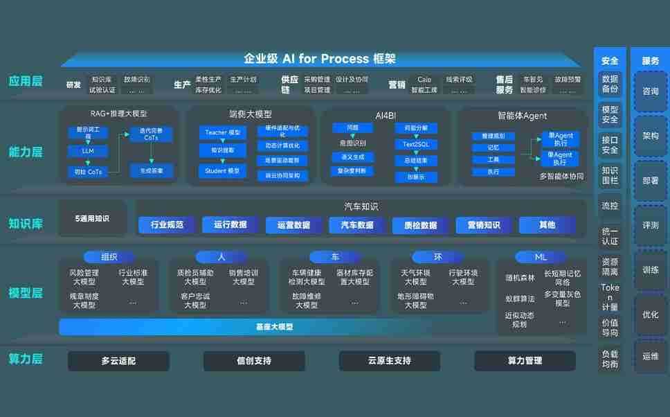 端到端的一站式AI工作空间深度融合了从企业战略规划到日常经营的全流程业务板块,,,,定向解决车企内部领域多、、、部门多、、、、链条长、、、场景碎片化等难题,,,,支持车企快速构建以AI为核心的生产力写作体系,,实现任务执行与AI能力的无缝集成与交互